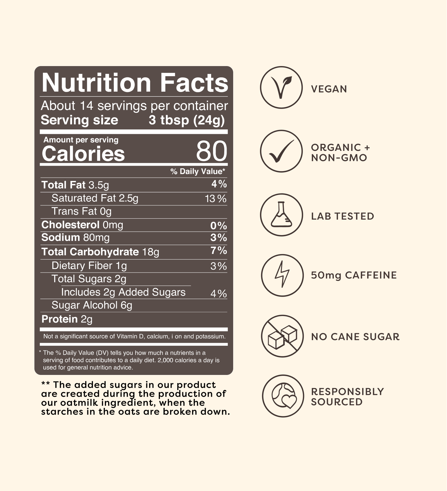 All the joys of your favorite oat milk latte, without the jitters & crash. Upgraded with adaptogens, mushrooms and probiotics to help ease stress and sharpen focus.