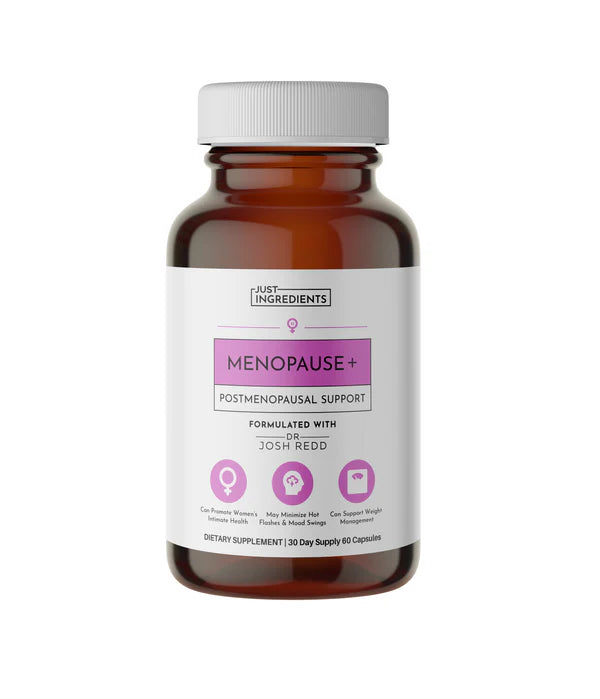 Just Ingredients Menopause+ is thoughtfully formulated to support women through menopause and postmenopause, promoting emotional well-being, physical comfort, and healthy hormonal balance during this natural life phase.* This non-hormonal blend features adaptogens, herbal extracts, and essential nutrients traditionally used to support symptoms associated with menopause, such as occasional mood changes, disrupted sleep, and changes in comfort.* Free from soy isoflavones, it offers support without phytoestrogenic effects. Key ingredients like organic maca, black cohosh, chasteberry, and Morosil™ Sicilian Red Orange work together to provide balanced support during this transitional time.*